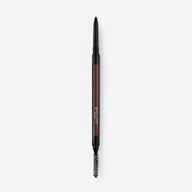 2730 ESUM BROW DEFINING PENCIL: A fine point, detailing pencil perfect for shaping and defining brows and facial hair. The .4mm, semi-hard wax, retractable pencil allows for precision application for sketching individual strands of hair and fill in sparse areas. The ESUM Brow Defining Pencil features a detailing spoolie brush attached at the end of the barrel for diffusing and grooming hair. Waterproof formula. Available in four shades – Auburn, Blonde, Brunette, and Ebony.