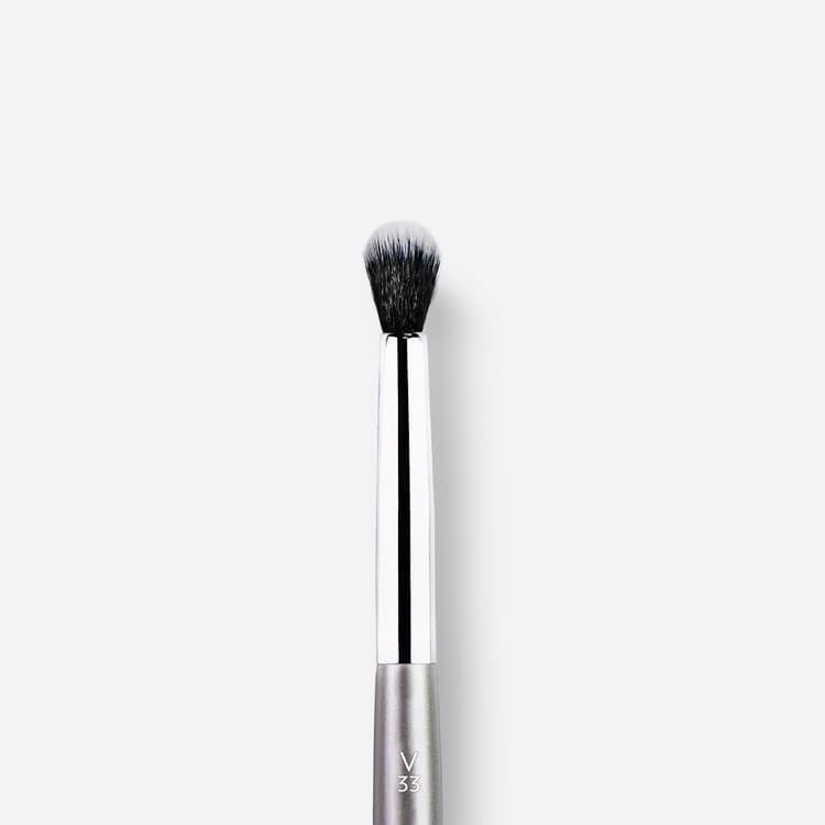 ESUM V33 – MEDIUM DOMED EYE CONTOUR BRUSH: A classic eye shading essential for the “windshield wiper” technique. The elongated brush head comes to a soft dome shape for diffused eye contour. Made with smooth synthetic fibers ideal for powder to cream makeup mediums. Also available in a larger size option. Vegan. Size: Hair Length 16mm, Full Length 187mm, Diameter 9.5mm. ESUM Makeup Brushes are a premium collection of professional tools relied upon by makeup artists and coveted by beauty mavens. Our range of brush styles offers variation in shape, size and hair texture for eyeshadow, eyeliner, eyebrows, foundation, contouring, blush and powder. From natural hair to synthetic vegan fibers each hair type is chosen for the ideal lay-down of makeup to support all professional makeup mediums, including cream, gel, liquid, powder and wax. Each brush is handmade and features eco-friendly cured birch handles with platinum bowed brass ferrules. ESUM Brushes are available at professional makeup stores and salons worldwide.