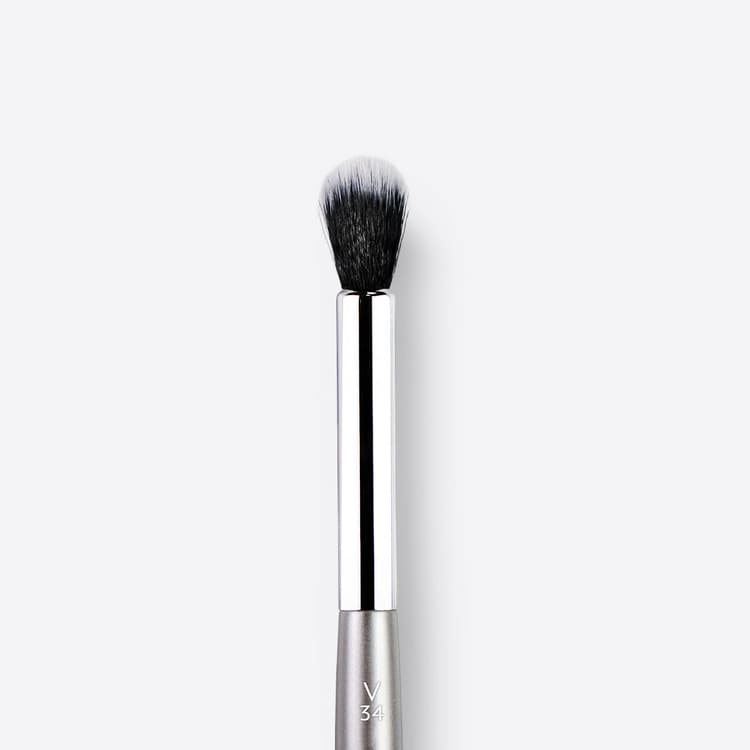ESUM V34 – LARGE DOMED EYE CONTOUR BRUSH: A large, elongated, round, domed shaped brush ideal for transition to blending eye makeup. Made with smooth synthetic fibers ideal for powder to cream makeup mediums. Also available in a medium size option. Vegan. ESUM Makeup Brushes are a premium collection of professional tools relied upon by makeup artists and coveted by beauty mavens. Our range of brush styles offers variation in shape, size and hair texture for eyeshadow, eyeliner, eyebrows, foundation, contouring, blush and powder. From natural hair to synthetic vegan fibers each hair type is chosen for the ideal lay-down of makeup to support all professional makeup mediums, including cream, gel, liquid, powder and wax. Each brush is handmade and features eco-friendly cured birch handles with platinum bowed brass ferrules. ESUM Brushes are available at professional makeup stores and salons worldwide.