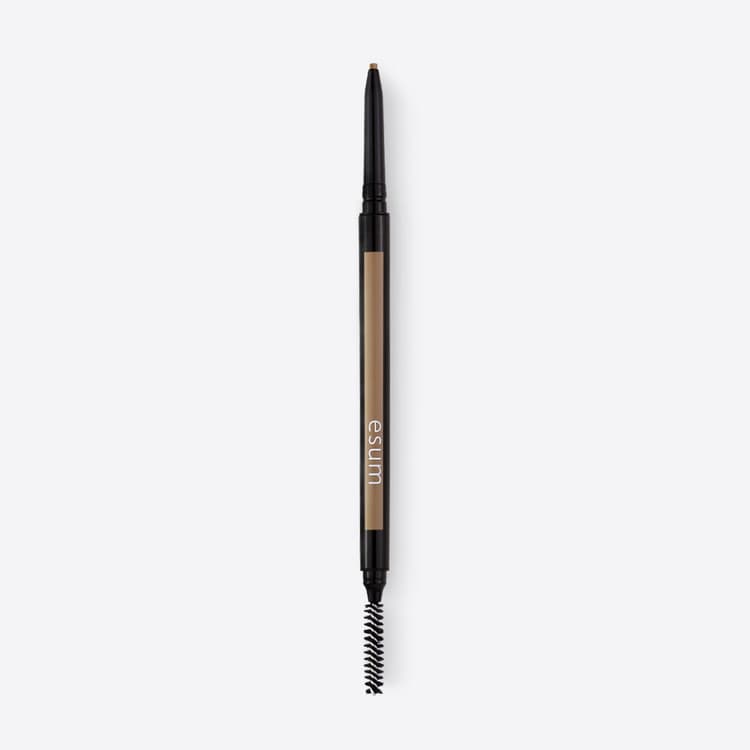 2733 ESUM BROW DEFINING PENCIL: A fine point, detailing pencil perfect for shaping and defining brows and facial hair. The .4mm, semi-hard wax, retractable pencil allows for precision application for sketching individual strands of hair and fill in sparse areas. The ESUM Brow Defining Pencil features a detailing spoolie brush attached at the end of the barrel for diffusing and grooming hair. Waterproof formula. Available in four shades – Auburn, Blonde, Brunette, and Ebony.