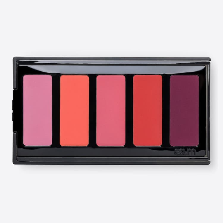Put your best feature forward with the ACCENTUATE blush palette. ESUM’s passionate collection of 5 fresh blush shades is designed to enhance any complexion with a matte skin finish. With buildable coverage from sheer to medium, it can be applied to the cheeks or lips. ESUM’s distinct formulas are performance-focused and developed with comprehensive attention to colour, finish, and are talc-free, lay-down safe, with clean and non-toxic ingredients.