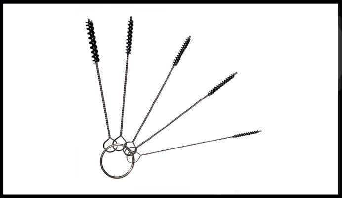 The Airbrush Cleaning Brushes are the perfect accessory for airbrushes to maintain and prevent build up in the needle chamber: The number one cause of backup in the airbrush is the use of multiple formulas in a single airbrush. Avoid long term issues with these handy mini cleaners. 5 different sizes per pack .2mm .35mm .4mm .5mm .7mm