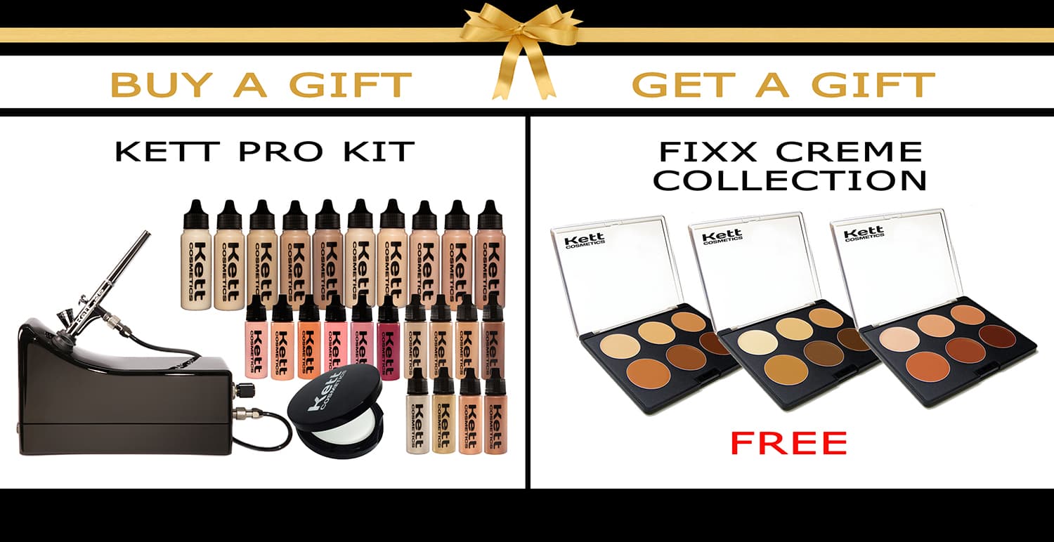 The Kett Pro Kit was designed with the experienced airbrush artist in mind. The Kett Pro Kit Includes: The Kett Jett, .25 Airbrush, Hydro Foundation Collection (35ml size), Blush Collection, Contour Collection, Highlight Collection, Kett Sett Powder, 2 Clear Cases, Airbrush Cleaning Brushes. Fixx Creme Collection: 3 Sets of Fixx Creme Makeup in Olive, Neutral and Ruby Series. (Retail Value: $315.00) Silicone Free – Paraben Free – Fragrance Free – Cruelty Free