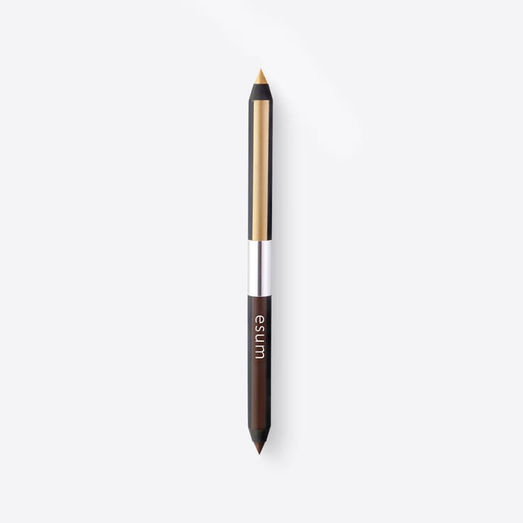 ESUM DUAL EYE PENCIL: A creamy, dual-ended eye pencil designed for shading, defining and highlighting features. The pro-wear formula glides on effortlessly with buildable coverage from medium to full pigment for a long-lasting, transfer-proof finish. This pencil is designed with one side in a cream-matte finish for shading and defining eyes and the other side in a soft metallic finish, ideal for highlighting eyes and lips. Safe for inner and outer eye lining. Waterproof, smudge proof, & transfer-resistant formula. Vegan. Cruelty-free and gluten-free. Available in three shades – Black / Platinum, Brown / Gold, Aubergine / Rose. Net Wt. 1G/.035OZ