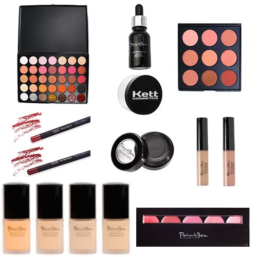 RRP$ 1422 6x HD Foundations 3x Lip Glosses 2x Dual Powders 1x Camera Ready Primer 1x Bronzer 3x Pigment Pots 1x Smudge Pot 2x Lip Pencils 1x Lipstick Pallet of 5 2x Kohl Pencils 1x Kett Concealer Pallet of 6 1x Ember Glow Blush Palette 1x Kett Rice Powder 1x Waterproof Pro Mix 2x 35s Palette 1x 15s Cream to Powder – Cut Crease Madrid Palette No further discount on kits You can choose your own colours Free postage offered on all kits